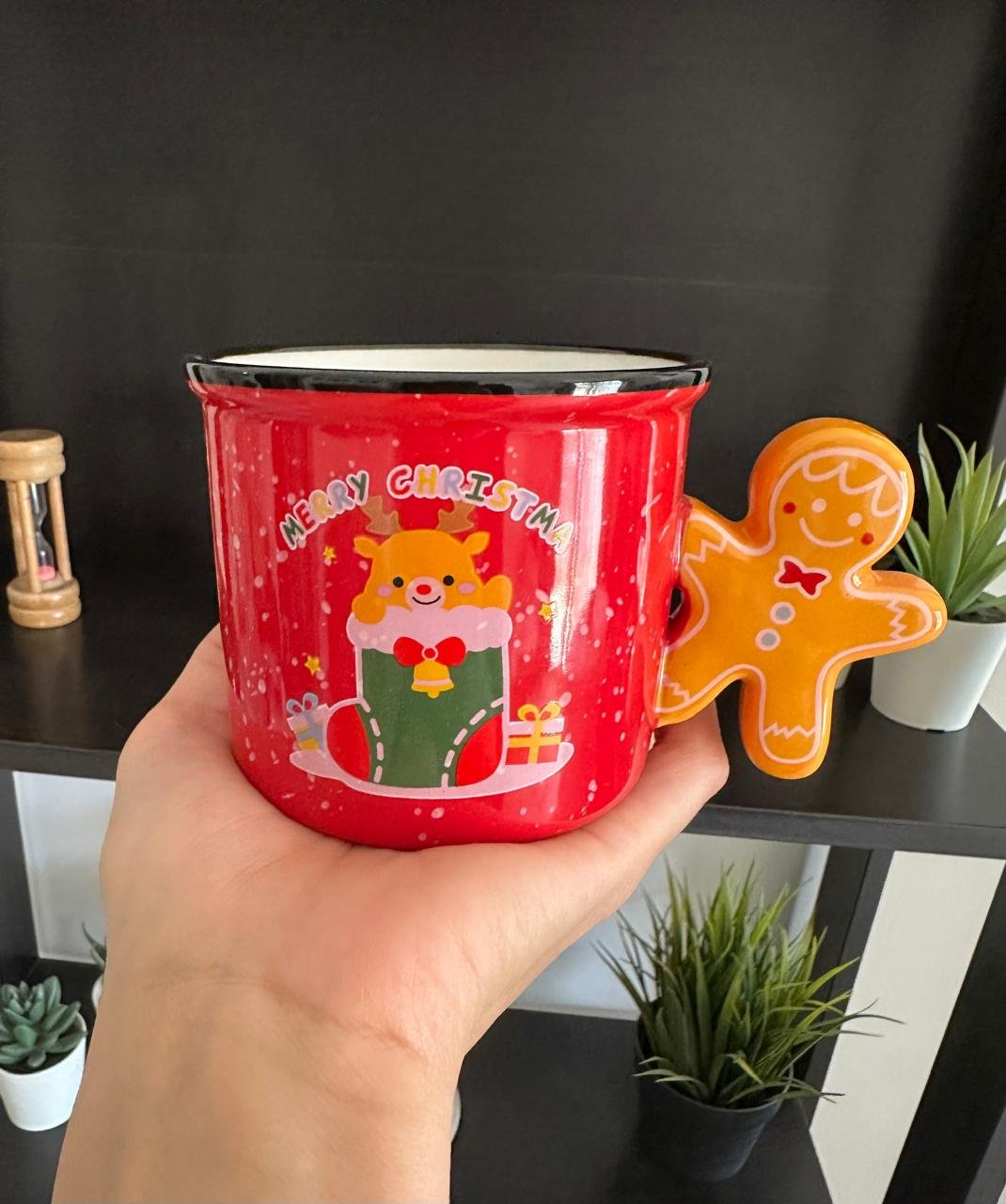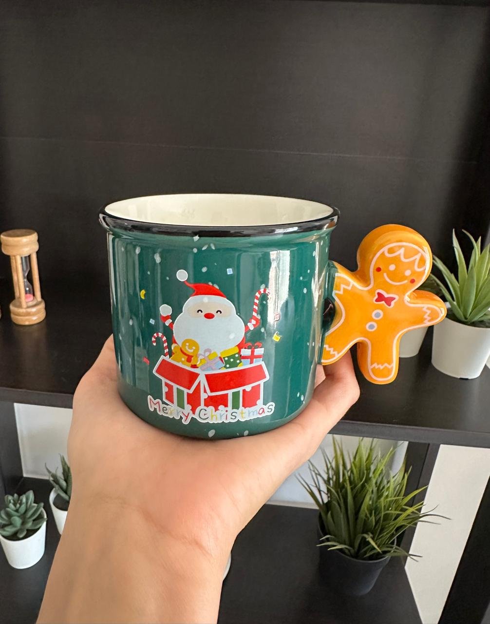 festive mug available in red and green, featuring a 3D handle shaped like a Gingerbread Man. With a capacity of approximately 300 ml, it’s perfect for coffee, tea, or any warm beverage, adding playful holiday cheer to your winter moments. Its unique design also makes it a delightful seasonal gift.