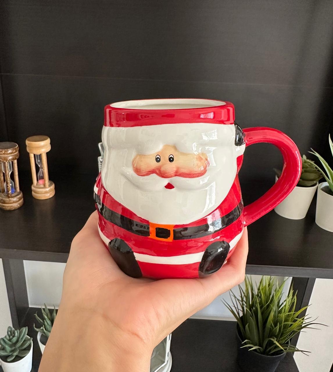 A large 3D mug shaped like Santa Claus, perfect for adding a festive and cheerful touch to the holiday season. With a capacity of approximately 550 ml, it’s great for enjoying coffee, tea, or any favorite warm beverage. Its charming design makes it a fun addition to your winter table or a delightful holiday gift.